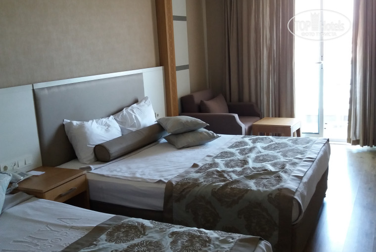 Приехали утром около 10.00 заселили около 14.00 как и положено. Заселили в старом корпусе и это нас совсем не расстроило. Номер отличный. Вид на мечеть и на море,это даже лучше ,чем в новом корпусе если с вижом на наш старый корпус. Территория очень ухоженная, всё чисто. Пляж тоже чистый, лежаков конечно не хватало в час пик,но это свинство отдыхающих!!! Занимали лежаки а сами приходили к вечеру!!! Еда разнообразная,всё вкусно,уж точно можно найти было еду по себе. Горки офигенные,ленивая речка огонь!!! Пляж тоже кстати нормальный,возле буйкой рядом с лодками на кот.катают туристов очень хороший вход,песочек. В итоге хочу сказать,что отель даже очень хороший, есть конечно минусы,но это мелочи на кот.при отдыхе не нужно на них обращать внимание. Весь персонал очень доброжелателен,везде тебе здрасти везде хэллоу. Смело езжайте в этот отель!!!