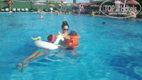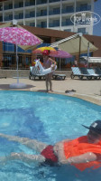 3-5 шагов от дверей ресторана-выход на дорожку в бассейн.Горки работают по расписанию, бассейн чистый, убирается каждый вечер. Каждый день , когда работают горки, у бассейна сидит спасатель.Днем у бассейна музыка, водное поло, дартс, аква-аэробика. лежаков хватает,народ большей частью на море.Есть маленький детский бассейн, там первые три дня купались наши дети, потом осмелели,одели желет , и круг, и уже купались с нами во взрослом.У бассейна есть бар,столики, с бара есть вход в ресторан.