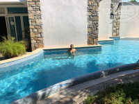 Отель очень красивый! Спас наш отдых, потому что муж не всегда вообще хотел отходить от бассейнов) На территории 3 бассейна, два небольших и один прям здоровый - вдоль заднего корпуса. Отель огромный - есть корпус с номерами "стандарт" и корпус с номерами "люкс". Не расстраивайтесь, если у вас в путевке стоит стандарт - эта проблема легко решается за 5-10 баксов на ресепшене. Так нам сначала предложили номер в котором 3 кровати раздельные и вид на забор. Я пришла на ресепшен, сказала что мне не удобно так спать и сколько будет стоить поменять номер. Через 5 минут мы уже заселялись в люкс с видом на бассейн на первом этаже (очень удобно утром проснулась - нырь в бассейн и освежилась!). Главное - не обращайтесь к туроператору с этим вопросом, им всегда объявляют 100 баксов и общаться с ними не хотят. Номер очень красивый - белый, между двуспальной и детской кроватью висит шторка, есть телевизор и диван со столиком) на балконе стол и удобные кресла)