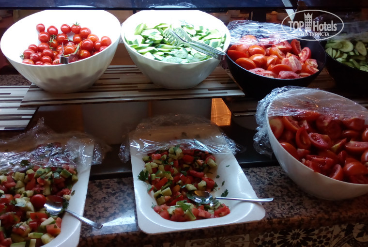 Отдыхали с мужем в этом отеле с 25.09-02.10.Питание ужасное,однообразное,сплошная соя!мясо вы здесь не увидите!Рыба практически каждый день,но сухая,горелая либо с ,,душком,,На завтрак каша рисовая и омлет либо яичница-на протяжении всего отдыха.Кто едет с детьми,даже не знаю,чем там их кормить!Из овощей-помидоры черри,помидоры половинки,помидоры четвертинки.так же и огурцы.фри-в начале спасала,но потом уже на неё смотреть было противно.
