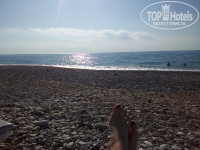 Пляж галька и достаточно крупная, в начале ногам не комфортно, но потом привыкаешь, считаю полезный массаж для ног. Для пожилых людей и детей это конечно препятствие не из простых, детей заносят на руках, бабушки в прямом смысле выползают на четвереньках из моря. Часто были волны, но море чистое.
