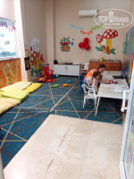 Во первых территория очень маленькая я бы назвала это микро территорией, ее практически нет. Одно Г-образное здание, один бассейн с горками и все.