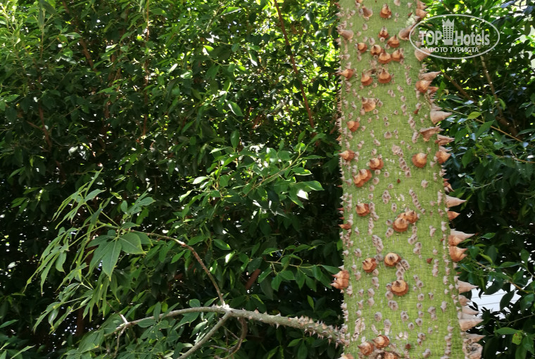 Территория. О ней – отдельно, потому что петухов, поющих к тому же, я раньше в отелях Турции не встречала. А тут они спокойно гуляют по территории. Красавцы! Еще черепаха ползала преспокойно. А сколько экзотических растений! Очень красивых! Чего только стоит дерево с шипами, родиной которого является Южная Америка! Конечно, между бассейнами и морем очень большая территория солнцепека. Никак не обойти. Т.е. тени немного маловато по дороге на пляж. Она вся между домиками. Кстати, шатлы ездят совсем не быстро, а очень даже аккуратно.