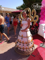 Очень впечатлила пенная вечеринка! Я бы сказала, что это зрелище….. для детей и ПАП! На уровне глаз детей – пена, фламинго и т.д., а на уровне глаз пап – барышни в бикини, русалки в стеклянном бассейне (кстати, очень красиво синхронистки выступали) и королева вечеринки в платье из шампанского! Это великолепно!!!