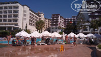 Отдыхал я в этом отеле в 20х числах сентября. В отель дорога заняла полтора час. По приезду было около двух часов нам одели браслеты и заселили в номер с восхитительный видом на территорию отеля номер не большой чистенький в нем есть телевизор с более 10 каналов в том числе есть несколько русских каналов, так же есть небольшой холодильник, кондей, фен, Много полотенец, Есть балкончик не большой примерно примерно 3-4кам на балконе столик пара стульев и сушилка так же на балконе есть свет. После заселения мы сразу направились к морю места на пляже были галька крупная рядом с отелем есть магазин вполне бюджетный но как по мне галька хороший массаж ног. Понравился шведский стол со своей богатой палитрой вкусов различных гарниров, котлет, салатов, соусов на и большому выбору десертов и напитков. Одно смутило это жадность некоторых постояльцев которые то и дело что нагребали себе всего с особой жадностью я думаю причина тому что очень вкусно повара приготовили за это им БОЛЬШОЕ Спасиб. Столов так же в достатке жалко что нет отдельных мест для курящих поскольку там много детей отдыхает и они этим дышат. В номер с собой еду брать нельзя Но тому есть свои причины. На территории есть 4 бассейна 2 больших, один для детей,1 и 3 горки есть различные игры волейбол, бильярд, настольный теннис, аэрохокей и т.п на территории отеля есть аниматоры предлагающие занятся интересным и полезным, есть тренажерный зал в общем скучать не придется. Еще на территории отеля рядом с пляжем есть бунгало снять его можно на день к нему прилагается тарелка фруктов кола, фанта, спрайт,минералка, пиво всего по 2 банки и бутылка вина бунгало очень уютное и симпатичное. Находятся бунгало перед спуском к пляжу. Из него открывается не плохой вид на море Обслуживание хорошее правда в баре в пластиковую посуду наливают хотя стекла в достатке. В целом очень красивое и уютное место советую рекомендую.