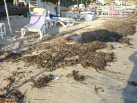 Про пляж тема особая. Таких лежаков, как в данном отеле, не видела нигде (фото прилагается ниже). Матрасы зачастую грязные и рваные. Приходишь на пляж с утра, пляж не убранный, грязный. Лежаки приходилось брать самой, потом долго ждёшь, когда тебе принесут матрас, т.к. матрасы под замком. Работник пляжа грубый, иногда просит "мани", жестами. Только люди лягут, как начинается уборка пляжа от мусора, мусор под лежаками. Один раз уберут, потом весь день пляж грязный до следующего утра. Пару раз с моря на берег выбрасывало много водорослей, которые потом работниками выбрасывались вместе с мусором в море (я в шоке). В море чего только не плавает, вплоть до мужских трусов, стаканчики и прочий бытовой мусор. Как такового пляжа в отеле нет, из нашего вывода (закуточек).