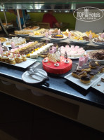 Питание хорошее, вкусные булочки, пирожные, блинчики. Фруктов мало, твёрдые сливы и дыни, грязно вымытый виноград. Вкусное мороженое было всегда на обед и ужин. На обед и ужин в ресторане нет ни чая, ни кофе, мы не привыкли есть пирожные с напитками. Это огромный минус для отеля. Посуда всегда чистая. Приветливые, улыбчивые повара и официанты.