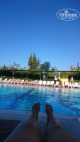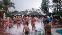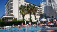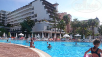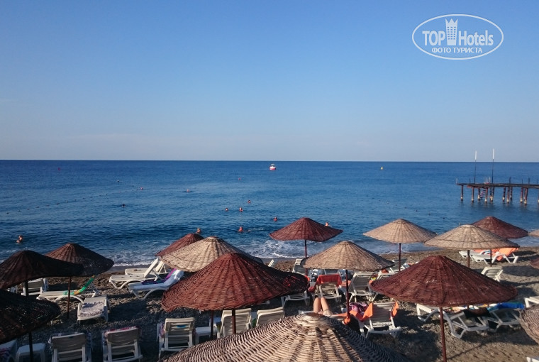 От Аэропорта до отеля ехать около 2х часов (делают одну остановку), приехали мы утром около 8, номеров свободных ещё не было, потому нас только зарегистрировали и надели браслеты, мы оставив вещи у ресепшена пошли осматривать территорию, от ресепшена если идти по прямой, то попадёте в лобби бар (там делают коктели, алкогольные и безалкогольные) напитки предлагаемы по все включено (джин, водка, виски, пиво, кола, фанта, спрайт, тоник, подобие швепса), остальное за дополнительную плату. Не доходя до лобби бара с правой и слевой стороны есть лифт, если илти на право по лестнице находящийся рядом с лифтом на этаж вниз попадаете на этаж В1 там несколько маганчиков, спа(за 25 долларов, делаю пилин, пенный массаж, массаж и маску для лица) бильярд, 4 игровых автомата по жетонам(боксерская груша, аэрохокей и 2 автомата для забрасования мяча) жетоны можно приобрести на ресепшен, 1 жетон = 1 доллар. Так же там находиться главный ресторан и при нем бар, где проходят завтраки, обеды и ужины (завтрак7:00 до 10:00 поздний завтрак 10:00 до 10:30, обед 12:30 до 14:00, переус в снек баре 12:00 до 16:00, ужин 18:30 до 20:30(с 02.10.2018 время изменили), был ещё ночной суп, но мы на него не ходили, потому не помню время, около 12 ночи). Далее выход из здания к бассейнам (их 4, один детский, один для горочек, и 2 взрослых мах глубина 1,40) горочки 3 штуки включают их с 10 до 12 и с 14 до 16. Слева от горочек находится снек бар ( все бары начинают работать с 10 утра, там же находится и ночной клуб работает с 23.30 до 2:00) там же можно сходить на перекус. За горочками находится Аля карт ресторан, но у нас он не работал т.к. конец сезона, за ним детский клуб и площадка, напотив этого находится диджейская рубка, за ней амфитеатр где 21:00 ежедневно проходит детская дискотека, а после неё вечернее шоу, после находитмя волейбольная площадка и место где пекут лепешки гезелме (творгом и зеленью, творогом, колбасой, сахором с корицей на выбор) и наконец пляж(галька) лежаков не хватало, но сотрудники отделя оперативно их приносили, мы заходили в воду или с пирса соседнего отеля или в обычных резиновых тапочках(в кораллках наверное было бы удобнее), многие заходили босиком и у них не было дизкомфорта. Пляж в 2 минуах неторопливой ходьбы от здания отеля. Рядом с пляжом водный спорт, там работают, не честные люди, за 15 долларов с человека, есть экскурсия к черепахам, ты платишь, едешь на катере минут 10, 10 минут купаешься рядом с катером и 10 минут обратно мимо черепашего острова, а черепах нет т.к. Сезон черепах июль и август, но тебе об этом никто ничего не говорит, деньги не вернут. Про территорию вроде все. Персонал очень хороший, все привеливые, отзывчивые, многие говорят по русски, анимация весь день, то акваэробика, то дартс. То пенная вечеринка, то зумба, то волейбол, то во водное поло, то полоса препятствий устанавливаемая на бассейне, в общем, если вы во всем участвуете скучать не придётся. В номер заселили около 11:00 за дополнительную плату поселили в номер с видом на море, доплата один день 10 долларов. От еды ждала раков про которые все писали, что раз в 10 дней рыбный день, но их небыло, возможно так же т.к. конец сезона, из была курица, индейка, рыба(мне очень понравилась) и странное мясо(странное т.к. Так и не смогла определить из чего оно) корторое дают вал всех отелях Турции, кучу салатов, овощей, пироженых и тортов, диет стол присутствовал, супы по 2 штук