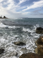 •Пляж чистый, просторный, лежаки удобные, мелкая мелкая галька-очень классная). Но !!! Сразу в море камни, о которые муж поранил ногу. В октябре море буйное, ветра, волны, камней посто не видно, и при выходе из моря прибивает волной прям о камни! Тоже самое в соседней 5ке Альдемар.