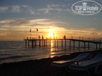 Пляж. Территория пляжа не слишком большая, впрочем, как и у остальных отелей рядом. Мы два раза отдыхали на общем пляже и пять раз снимали отельное бунгало за 20$ в день. К слову, при аренде бунгало в стоимость включены две банки пива Efes, две банки Колы, два Спрайта, две Фанты, две минералки, бутылка вина и большая тарелка с фруктами (в разное время были бананы, персики, сливы, груши, виноград, мандарины, апельсины и яблоки), а также два отельных полотенца, которые вечером надо вернуть на рецепшен.