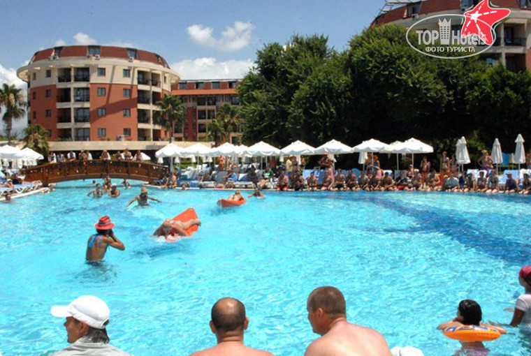 Территория отеля не большая, но очень ухоженная, и главное, есть все что нужно и бассейн , и горки, волейбольная площадка, баскетбольная, большой теннис и маленький, детская площадка.