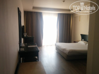 Прибыли в отель мы к часам 8-9. Встретили очень радушно.Заселили нас к часам 11. Два шикарных номера: один (бабушки)- с двумя кроватями, второй (наш) - с одной большой кроватью, но по просьбе был доставлен манеж для ребенка. Подробнее о номере: огромная ванная комната, в которой располагались туалет, душевая с душевой панелью (разные виды душа), телефон, большое зеркало с подсветкой и , просто идеал для девушек, маленькое круглое зеркало с подсветкой, прикрепленное к стене (мечта для макияжа). В комнате на полу лежал ламинат. Свет был и обычный, и подсветка. Очень круто было то, что номер был на первом этаже с небольшой террасой. Кондиционер с разными режимами угодит даже самым привередливым. Так же в номере был сейф для хранения ценностей. В номере всегда убиралось отлично. Свежие полотенца, свежее постельное по запросу, вода в достатке, обновленные в ванной кондиционер для волос, шампунь и гель.