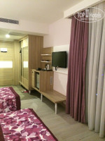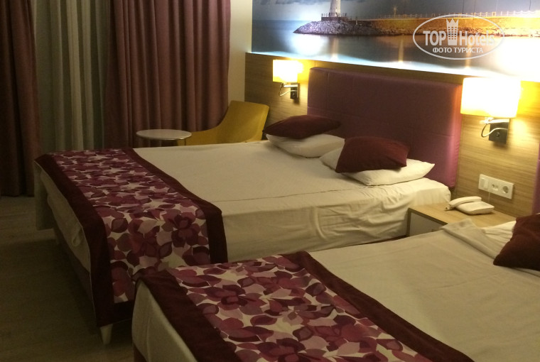 Номер: мы бронировали эконом но на один день нас заселили в Deluxe, т.к. не было свободного эконом. В котором мы и остались за небольшую доплату, нам сделали скидку т.к. конец сезона. Мебель и ванная комната современная. В комнате большая двуспальная и односпальная кровати, жк телевизор, кресла, столик, тумбочки, чайник с пакетиками чая и кофе, в холодильнике большая бутыль воды, фен, гель и шампунь. Балкон на весь номер, 2 выхода, т.к. угловой номер. Вид из номера - шикарный на бассейн и море.
