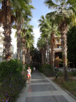 Территория большая. Красивая центральная аллея. Особо хочу отметить, что забор отеля затянут сеткой, соответственно меньше пыли.