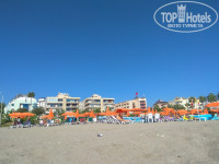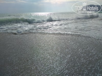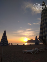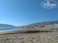 Находится очень близко, через дорогу это пожалуй один из немногих плюсов отеля. Но там все платно. Пляжных полотенец не дают. Шезлонги и зонтики, кафе все будет если заплатить. Можно лежать на песочке, никто не будет против, многие так и делали. Заход в море не совсем удобный и рядом есть устье реки впадающей в море, из-за этого иногда был неприятный запах. Вообще все побережье Аланьи каменистое и с частыми волнами, поэтому тут к этому просто нужно быть готовым. Спасателей нет. Рядом пляж отеля Oba star, советую ходить на него, аренда шезлонга там дешевле (7,5 лир на весь день) и заход в море лучше. Вид конечно красивый на город, на крепость, вечером светится шикарно. Бассейн на территории отеля хороший, чистый. Шезлонги со старыми матрасами. С утра тень от зданий падала на бассейн и вода нагревалась только к обеду. Рядом, кстати, есть подобие тренажерного зала. Помещение маленькое, окно большое на всю стену и попадает солнце, очень жарко заниматься.