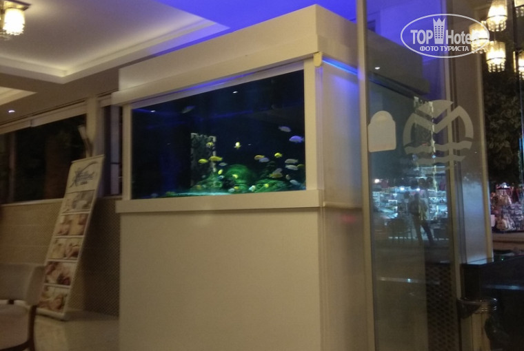 Привезли меня в отель около 12 часов дня. На ресепшен русскоговорящая девушка Юлия предложила номер с видом на море за дополнительную плату(20$) либо приобретенный мною по путёвке стандартный номер. Я согласилась на стандарт. Сказали подождать,по правилам заселяют в 14,показали комнату для хранения багажа. Ресепшен симпатичный, есть большой аквариум с рыбками, работает вай фай. Но я не успела сообщить родственникам,что все хорошо, как меня позвал молодой человек, с ресепшен и сказал держите карту от номера. Пришел приятный мальчик-носильщик, сопроводил до комнаты и получил чаевые.