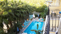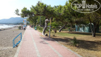 ТЕРРИТОРИЯ ... Сама территория чистенькая, всё в зелени, бассейн тоже чистый, но в октябре был уже холодный, и поэтому купающих не было замечено. Так же на территории есть 3-4 домика , в которые видимо тоже иногда заселяют, но в наш заезд они пустовали. Хотя где то в отзывах читала что кому то там понравилось. И второе здание анекс. На первом этаже живёт обслуживаюший персонал, а второй и третий этажи был заселен отдыхающим. Там вроде по 5 номеров на каждом этаже, и они точно меньше по размеру , чем в главном здании. Говорят в этом корпусе потише, хотя и в основном здании тоже всегда была тишина. Где то на другом форуме прочитала, что в общественном туалете грязь и пользоваться им невозможно. Специально зашла посмотрела, идеальная чистота..фото прилагать не буду, да и грязи там взяться не от куда, потому что им там практически никто не пользовался. Может и заходили туда, но только для того что бы вымыть руки. Про питание в этом отеле уже много написано, оно действительно неплохое и самое главное вкусное. На завтраке всегда были яйца варёные, каша рисовая, колбаса двух видов, сыры то же двух видов ,йогурты, всякая зелень , огурцы, помидоры оливки,, масло и джем . Кофе из аппарата и чай. И стоял аппарат с юппи, но мы не пользовались, поэтому про вкус не скажу. На обед всегда один вид супа пюре, два вида гарнира ( картофель фри, рис, макароны, булгур, тушеные овощи, один раз было пюре) , за 6 дней нашего отдыха один раз была рыба, и один раз котлеты из баранины, так же нагетсы , а в основном всё куринное в разной интерпретации. Тоже самое было и на ужин. Три раза были вкусные палочки из слоёного теста внутри с творогом, или с картофельным пюре. Которые готовил сам шеф-повар, и они ему действительно удавались, и поэтому разбирались моментально. Из фруктов в основном были яблоки и мандарины, и пару раз виноград. Сладкий стол тоже присутствует, но вот к сладкому равнодушны, поэтому про вкус не скажу.