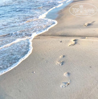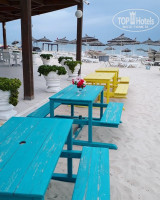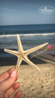 Пляж с волшебным светлым песком, вход в море безопасный, комфортный, зонты плетёные старые, но это не проблема. Лежаки и матрасы всегда есть! Вода прозрачная, только после шторма мутная с водорослями. Грязным пляж видела только один раз, во время шторма. А так убирают трактором водоросли.