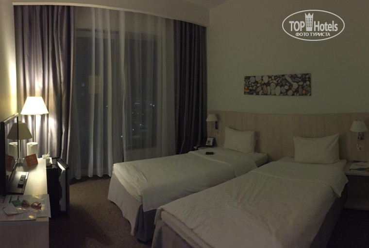 «Парк отель» — это большая деревня (очевидно, олимпийская), 12 корпусов, единовременно проживает до 7 тыс. гостей. Всё корпуса 8-этажные, два лифта справляются, ждать долго не приходится.