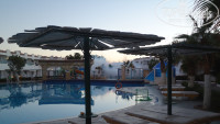 Прилетели-таки в Шарм 5-го декабря. Сели в автобусик, и интрига началась: гид сообщил, что мы едем ни в Векейшен, а в Бич! ??? Разбираться не было ни сил, ни желаний. Доехали минут за 15. На ресепшин всё, как обычно, заполнили анкету, одели браслеты, и на ужин. Заселение заняло минут 5. Номер, как номер, в 34 корпусе на первом этаже. Расположение отличное: тихое место, не далеко и не близко. Денег за хороший номер при поселении у нас не просили, да и какой смысл платить за «кота в мешке». Вот если предоставленный номер не устраивает, то тогда стоит задуматься. Номер 3417 хороший: чистенько, сейф, мебель еще приличная, телик плазмочка, водичка на столе, чай-кофе-сахар-чайник-чашки, постель хорошая, все двери исправны, на верандочке порядок, ванная комната блестит чистотой, и в комнате представляете – с занавесей и штор на голову пыль не сыпется – и я не чихаю! Ну не хватало одного банного полотенца, душ не в ту степь лил…. Да и флаг им… Это всё будет потом, вещи в номере, идём осматриваться. НА МОРЕ! Ночное море ни в каком другом месте не было таким красивым, как в этом отеле! Подсветки пляжа, смотровых площадок, скалистого берега, арок впечатлили. Территория просто огромная. Прогулялись до Гриль Хауса. Там в баре нам, как новичкам, сделали сладкие коктейли. Приятный вечер на берегу моря, усталость и напряжение улетучились. Ура! МЫ отдыхаем)))