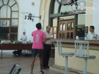 Пляж своеобразный с очень большим количеством шезлонгов, расположенных в разных ярусах пляжа и в разных доступных местах. Но если вы думаете, что будете лежать на шезлонге, а ваши пятки будет омывать морская волна, - это заблуждение. В воду только два спуска-пирса, третий закрыт. Зайти – выйти в\из моря при аншлаге посещения Векейшина и Бича тоже почти очередь. Покупался, взобрался на выбранный ярус и загораешь. После Мелтоновского рифа (кто знает, тот поймет) риф на этом пляже проигрывает в разы. Рыбки есть, но для нас скудненько. В декабре солнышко начинало приятно пригревать где-то с 8-30, а в 12-30 уже здравствуй тень в той части пляжа, который ближе к территории Векейшин. Дольше всего солнышко, где-то до 15-30, на части пляжа возле ресторана Гриль Хаус. Мы сначала плавали в море, а загорать уходили к бассейнам Бича – двигались много и в воде и на воздухе. Загорать на пляже не нравилось из-за очень большого количества людей и продавленных шезлонгов. Возле бассейна с горкой, где находится ресторан Пергола, было загорать вольготно и приятно. Температура воды около 18-19 градусов для нас приемлема, поэтому купались и наслаждались чистотой бассейна с горкой и бассейна глубиной 2.8 м. Волосы после этой воды были мягкие как после родниковой. Никакой хлорки в очистке и дезинфекции воды нет. Рядом бар, а с 10-30 жарят пончики с разными джемами и шоколадом. Очень вкусно. Бармен очень внимательный, он помнил все любимые напитки своих посетителей. Браво. Фото с ним прилагается.
