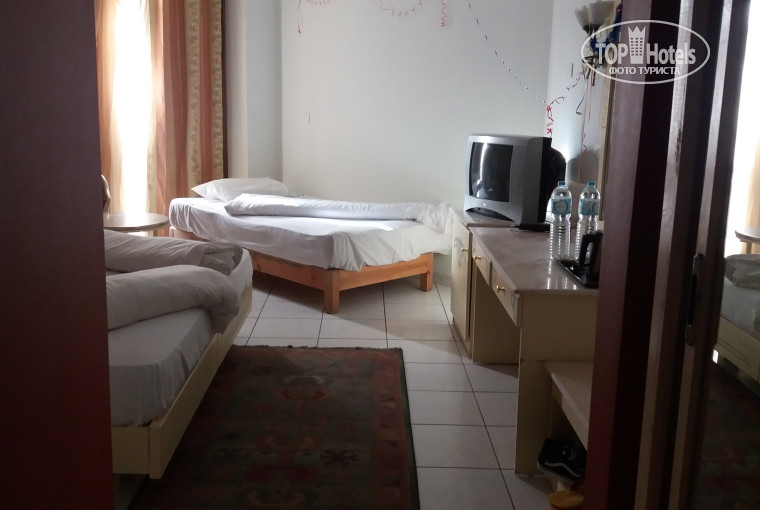 Расположен слева от ресепшена, возле холодного бассейна. Второй этаж. Тихо. Очень чисто. Номер после капремонта. В санузле новая сантехника и аксессуары . Довольно много мини шампуней, кондиционеров для волос, гели для душа и т,д, В остальном, все как обычно. Телевизор, минихолодильник(пустой) ,сейф(бесплатно). Две кровати сдвинули в одну. Сыну поставили дополнительную кушетку с матрасом. Сразу пришлось попросить третье одеяло, т,к. ночью было холодно. Плюс- чайник и стикеры кофе ,чая,сахара. Бутылка воды без газа.