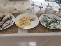 5. Еда! Тема для обсуждения: питание в корпусе советских времен, сначала выстраивается очередь и в назначенное время, двери открываются и все ломятся внутрь. Было ощущение что попала в детский пионерский лагерь. Шторы в помещении проженные местами, посуда старая, на входе играет магнитофон. Кофе - по регламенту положено только на завтрак. И на мою просьбу принести мне хотя бы обычный пакетированный, был отказ. "У нас есть молоко, кефир, какао и чай (лисма и ява)" - ничего из того что я пью. Из напитков - всё, фрукты отсутствуют, выпечки и сладостей нет. Еды - выбор совсем небольшой.