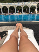 бассейн классный ,горка работа пару часов 2 раза в неделю, кафе у бассейна скудное- мороженое первые 2 дня давали любое а потом сказали что бесплатное только ванильное и шоколадное, а остальное- шарик 80р, пицца была не всегда, фри нормальная, еще были типо соски в тесте жареная в масле ну так себе