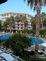 Отдыхали вдвоем с мужем в ALARA PARK 5* с 28.07 по 06.08.2018, 9 ночей, через туроператора Coral Travel. Приехали в отель в 12-30, заполнили карту отеля, чемоданы оставили в комнате-хранения, нам одели браслеты и отправили на обед в лобби-бар, заселили нас в 13-30 блок № 3 номер 3305. Очень чистый, красивый и уютный номер, стильный дизайн, большая кровать, встро-енный кондиционер, который поддерживал комфортную температуру на протяжении всего отпуска. Балкон с видом на бассейн и парк. Вся территория утопает в сочной зелени, цветах, пальмах, ухоженные газоны, чистота и порядок. Мраморные дорожки, также чистые. Сотрудники отеля в течение дня ухаживали за зеленью, убирали, мыли территорию, в общем, создавали для нас тропический рай. Благодаря обилию пальм, апельсиновых деревьев легко переносилась жара 40 градусов. Бассейны окружены деревьями, поэтому мы купались и загорали на лежаках в их тени даже в обед. Вода в бассейне чистая и теплая, с наличием хлорки для дезинфекции и профилактики. Пляж ракушечный, с валунами под водой, плавали с масками в ластах, разнообразный подводный мир, много крупных рыбок, видели морского ежа с огромными иголками, с пирса не прыгали, т.к. опасно. Лежаки на пляже занимало просто – убирали полотенца на столики, и через некоторое время выслушивали туристов, что это место они заняли на все дни отпуска, было немного забавно и в тоже время некомфортно. Желательно убирать полотенца с охраной, чтобы на себя не брать ответственность, ну и пожелание отелю - применять штрафы за брошенные полотенца. Питание в отеле разнообразное, нам очень понравился турецкий рис, местные соусы из оливкового масла и специй, каждый день готовили вкуснятину на гриле: барани-ну, говядину, форель, овощи, птицу. Фрукты: спелые сахарные арбузы, сладкие апельсины, яблоки, бананы, нектарины, персики, виноград и т.д.. Сладости: пахвала разных сортов, тортики, пудинги и т.д. На завтрак аппетитный омлет, который делают индивидуально, глазунья и многое другое. Почти каждый день посещали сауну и хаммам, в этом же здании купались в бассейне, он очень прохладный и приятно после сауны поплавать в нем. Ездили в шопинг-тур несколько раз, купили дубленку и кожаную куртку, по выгодным ценам. Были в Авсаларе на рынке, 5 минут ходьбы от отеля, также ездили на автобусе за 1,5 доллара/чел в Аланию, гуляли по городу, посетили крепость (вход бесплатный), купались в море, магазины не впечатлили, у нас товары качественнее и дешевле. Отельный гид Хедие очень приятная и ответственная, с утра и до позднего вечера была в отеле, знакомство с гидом проходило в серьезной дружеской обстановке: она рассказывала про законы Турции, про правила поведения, как самостоятельно добираться до Алании, и что мы должны всегда знать и помнить, находясь в чужой стране. Хедие заботилась о нас на протяжении всего отдыха, это нам очень нравилось, за сутки предупредила нас о смене авиарейса и перенесении времени вылета (такие изменения возможны, и предусмотрены договором), но конечно нам было неприятно, т.к. вместо прямого перелета нас отправили через Москву. Я посещала аквааэробику, которую вела Дуня, йогу, вечером было мини-диско и потом конкурсы для взрослых. Выражаем благодарность руководству отеля, персоналу, аниматорам! Спасибо за прекрасный отдых! Это была наша первая поездка в Турцию и мы ей очень довольны!
