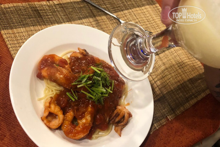 Встреча/номер: по приезду нас угостили стаканом сока, проводили в номер, дали ключ карту (номер был на втором этаже с балконом). Номера как на всех фото, что выкладывают гости отеля. Очень красиво, со вкусом. Ох уж эта ванная, зная о том что она есть, мы из дома привезли несколько бомбочек для ванны! Прихватите и вы с собой! В номере есть: чайник, набор чай/кофе/сахар, бесплатная и платная вода и минибар. Двуспальная большая кровать и прикроватные тумбы, тв (большая плазма) с одним каналом и то почти не работал. Ребята, если хотите вечерком кино посмотреть, скачайте фильмы на флешку (советик))) Зона душевой, раковины и туалета очень красивая, камушки и плитка, всё белое (полотенца в том числе) и сияет чистотой! Там же большой шкаф. С вешалками, зонтом, вьетнамками на прокат, и сейфом) Мыльные принадлежности: мыло, ватные палочки, щётка и паста зубные, швейный набор, шапочка для душа. В общем они позаботились обо всём! И эти средства по мере вами расходования пополняются! Уборка приличная!