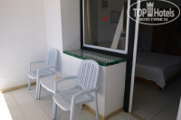 Номера: Продают только категорию стандарт и с видом на море. Стандарт тоже очень разный. На фото есть два вида. Номера разбросаны по всей территории в виде мини-домиков. Есть 1- и 2-этажные постройки. Первый номер нам дали напротив главного бассейна (на фото он имеет куполообразный потолок). Небольшой, 2 кровати нельзя двигать, т.к. на бетонной плите, балкон был, тв, сейф, санузел совместный. Такие номера во всех мини-домиках. Только постоянно у бассейна была громко музыка. Поэтому вечером попросили поменять. Второй номер - на фото есть - кровати вместе, окна на релакс-бассейн, с/у раздельный, сейф (платный), есть одеяла и подушки дополнит., балкон с сушилкой, номер посветлее. Похожие номера - с видом на море. Счастье стоило - спокойно спросить на рецепции (английский понимают). Потом принесла 10 евро, хотя это просто малый подарок, никто деньги не просил, наша прихоть - первый номер тоже был неплохой.. Убирали чисто, воду приносили 1,5л бутылки. Нам нужно больше - спросила горничную - дали 1 раз 5 евро, весь отдых в номере было много питьевой воды)).