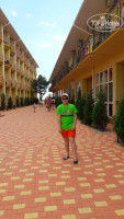 Отель вполне нормальный, номера хоть и маленькие, но тем не менее есть все необходимое: два спальных места, холодильник, телевизор, кондиционер, совмещенный узел, всегда горячая вода в душе. На выходе из номера что-то вроде веранды. Стоит стол, стулья. Приятно сидеть, смотреть вниз на бассейн. Территория облагорожена. Посторонних на территории нет. Отдыхающих много, пустых номеров практически нет, но друг другу никто не мешает, все ведут себя прилично.