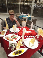 Подходим к стойке регистрации, над ней огромный экран, читаем -"Зоя с днем рождения!!!" Градус настроения резко возрастает. Регистрацию я сделала заранее онлайн, поэтому заселение проходит мгновенно. Заходим в номер градусник настроения вааще взрывается - нам дали номер на шестом этаже, с умопомрачительным видом на море и бассейн, тысяч на 20 дороже чем оплачивали, без всяких доплат! В номере уже стоит ведро со льдом с бутылкой красного вина, красивые бокалы, тарелка с шоколадными конфетами, тарелка с красиво нарезанными фруктами, ананасы, киви, грейпы, апельсины, мандарины, все в очень красивой посуде. А на кровати конверт с поздравительным письмом юбилярше от всего коллектива ДБГ! Номер упакован всем что полагается в приличной пятерке, большой балкон там столик, два кресла, сушилка для одежды, пепельница, в туалете полный комплект всего, зубная паста, щетка. Минибар заполнен, кофе, чай, сливки, чайник, посуда. Ну да ладно, пошли дальше. А дальше был праздничный ужин. Не смотря на то, что мы только заехали, итальянский а-ля карт ресторан уже ждал нас празднично накрытым и украшенным столом. Покрытый красным бархатом, уставленный роскошной посудой, свечами, бантами, цветами стол лишил мою свекровь дара речи. Ну очень приятно было...очень! Еда, напитки, подача, все на высшем уровне! А потом в зале погасили свет, зажгли большие бенгальские огни и все сотрудники ресторана внесли торт и спели песню.. и весь зал пел и аплодировал... А на торте красовалась надпись - имя и фамилия юбилярши и о! большая цифра 65! Давно мы так не смеялись, слезы счастья у свекрови, праздник получился на славу! И в каждом лифте, а их в отеле великое множество, есть маленькие телевизоры, на которых тоже было написано поздравление Зое. Вот в таком состоянии абсолютного счастья и прошли наши все дни отдыха. Погода стояла просто летняя, на солнце градусник иногда показывал до +28! Я купалась в море, а потом с Зоей вместе заплывали в горячем бассейне на улице, это просто нереальное удовольствие. На улице, под пальмами, огромный подогреваемый бассейн! Очень крутая фишка ДБГ! Не могу в коротком отзыве описать все достоинства отеля, нам все понравилось, еда в основном ресторане, еда в аля-картах, напитки во всех барах, шоколадные конфетки , чудесный спа, и парилка и сауна и хамам, и чистота во всем нас устраивала, и развлечений хватало. Очень понравилось, что с нашими браслетиками мы ходили в соседние Дельфины отели, нас пропускали ( правда Дельфин-Дива и Дельфин Палас были закрыты, то-ли на реновацию, то-ли просто на зиму), а вот в Дельфин Империал мы чудесно погуляли, и поели и выпили! В ДБГ территория огромная, во всех корпусах и этажах мы только к концу отдыха ориентировались сносно и могли быстро добраться из пункта А в пункт Б. Отдельным пунктом хочу выделить нашу благодарность работе гестов, а особенно Миле. Я ей написала еще до приезда в отель, изложила в письме просьбы и пожелания. Но в действительности реальность превзошла все мои просьбы и ожидания! Как они стараются исполнить все просьбы и желания гостей! По любому вопросу - мгновенная реакция и максимум внимания! В моем багаже много стран, много отелей, но в Дельфин Би Гранд отеле я чувствовала себя званным гостем! А моя свекровь Зоя после такого отдыха и юбилея помолодела, похорошела и уже намекает, что мой юбилей в октябре тоже надо 