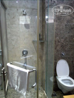 В номере большая двухспальная кровать, над ней потолочный вентилятор, две тумбочки и комод. В углу висит кондиционер, не инверторный и поэтому шумный. Всё оборудование номера работало исправно. Если придираться, то можно отметить давно не чищеный от солевого налёта рассекатель душевой лейки в кабинке. Кстати, стеклянная стена душевой кабины выходит прямо в спальню. Со стороны душевой кабинки, правда, есть шторка. Кто мне объяснит этот индийский прикол, встреченный уже второй раз???