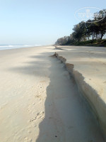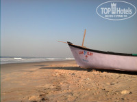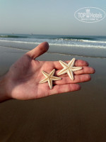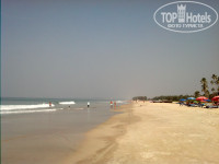 Пляж. Полоса очень широкая, метров 10 до первой линии лежаков и ещё метров 15 до шеков. Песочек мелкий, очень приятный, ближе к полосе прибоя плотный, очень удобный для утренних прогулок спортивным шагом, чем мы, собственно и занимались каждое утро, оттопывая по 4 – 5 километров в разные стороны, иногда попутно занимаясь спасением морских звёздочек, не успевших уйти в океан с отливом. Собаки на пляже есть, но они не навязчивые. Иногда во время прогулок одна такая пристраивалась рядом и гордо трусила всю дорогу, рявкая на остальных, дескать, отошли все, это со мной! :) Коров на пляже нет совсем. Однажды только видели в безлюдной части пляжа, как пара мальчишек завели корову в море и устроили ей «купание красного коня». Местных или приезжих индусов немного. Пляж убирается коммунальщиками, за мешками с мусором регулярно приезжает машина, которая вывозит и мусор из шеков. Поэтому откуда мусор на задворках шеков – тайна великая есмь… Девочки-торговки, предлагающие браслетики/сари/рубашки, берут их в лавках в 100 метрах от входа в отель, увеличивают цену в 1,5 раза и пытаются впарить расслабленным загорающим туристам. Имейте в виду.