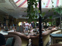 Отель расположен в 20-30 минутах езды от аэропорта Хургады. Очень просторное ресепшен с большим лобби-баром. Есть курящая и некрящаяя зоны. Заселение строго по графику, после 14-00. У отеля большая территория багаж развозит бел-бой на тележке, идти в номер лучше с ним, т.к. отель состоит из 2х-3х этажных блоков,а нумерация номеров достаточно сложная не смотря на обилие указателей. От лобби до моря около 500м. по красивой аллее. Номер стандартный для Египта, минимум изысков, мебель не новая, отель построен в начале 2000х. Удобнее всего жить или возле лобби или вблизи с моря, желательно с видом на центральнуюю аллею. В отеле три рестора, основной, итальянский и местный, еда примерно одинаковая, мне больше понравился основной,т.к. в нем есть окна на улицу и терраса. Вечером возле бассейна на открытом воздухе накрывают столики, это зона а-ла карт, можно записаться на ресепшен, все тоже ,что и в основном ресторане плюс несколько блюд гриль.