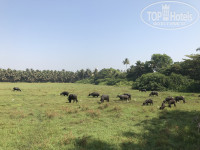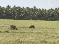 Отдыхали с семьей и ребенком 7 лет,в марте,отель выбрали по совету сестры,так как она там отдыхала,ей все понравилось,хотели в Алагоа,но нас отговарили,он подуставший)))А Гоа Виладжо после ремонта и реконструкции,и в главном корпусе еще идет ремонт кое где красят,но это нисколько не мешает отдыху)Прилетели рано утром,нас сразу заселили,не дожидаясь 12-14 часов,как говорила гид изначально,дали номер в главном корпусе,на 4 этаже,лифта нет,но пролеты небольшие между этажами,номер просторный двойной)Окна с балконом выходили во внутренний дворик отеля и на дорогу.Утром выходишь на балкон,тишина,только птички поют,и пальмы,словно находишься в джунглях)))Территория отеля небольшая,но красивая,ухоженная,вся в цветах.На территории отеля живет сом)))Мы каждый день подходили и здоровались,скучает бедный...Есть бассейн для маленьких лягушатник и взрослый,глубокий 5-6 метров,что удивило,для пловцов спортменов видимо)))Брали тур,завтрак и ужин,так как не хотелось с ребенком ходить вечерами на пляж ужинать.Завтракать можно и в ресторане внутри и снаружи стоят столики,где рядом жарят омлет,глазунью,блинчики.Пока завтракали при нас несколько раз падали кокосы у бассейна,забавно)))Как в рекламе Баунти)))До океана идти неспешным шагом минут 10-15,мимо живописных пейзажей,справа рисовые поля,где обитают разные птицы,цапли,утки и аисты)))Как в зоопарке)))Рядом пасутся буйволы,в болоте цветут лотосы)))Обедали в шеке у Джимми,готовят вкусно.Это когда идете через отель Нану,справа при входе на пляж.Доллары меняли в палатках по пути на пляж у Саши и Гриши,рядом с Нану отелем они стоят при входе на пляж палатка справа,либо у Саши который стоит у Коконат отеля,это нужно идти через Алагоа отель,проходите через пальмовую аллею,потом через Коконат отель,и его палатка прям при входе на пляж.Торгуйтесь в Индии везде,цены заламывают бешеные.Океан теплый,как парное молоко,но волны,мы попрыгали на волнах,полежали на берегу)))Собаки бегают,но они не мешают,забавные,добрые)))В выходные много индусов приезжает,занимают весь бассейн,ресторане очереди за омлетом,шумят,галдят,просят фотографироваться.После них много мусора на пляже.В одежде прыгают в бассейн,но им делала замечание охрана отеля.Ходили в Колву,пешком минут 20 по пляжу,обратно на тук туке 200 рупий.Пока дойдешь до Колвы,пристанут торговцы на пляже,еле отвяжешься)))))Купи да купи)))В целом отель понравился,душевный,тихий,релакс))Просыпаешься утром птички поют,туканы,классно.Отель явно не тусовочный.Кому нужен шум и гам,тусовки и тд,вам не сюда)))Отель рекомендую для семей с детьми.В Гоа и в этот отель однозначно вернемся!!!)))