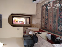 Мебель старенькая, пошарпанная, двери в шкафу купе плохо ходили. Сейфа в номере не было. Пользовались на ресепшн бесплатно. Маленький телевизор с 3 русскоязычными каналами. Но мы его включали утром пока собирались и вечером минут на 15.