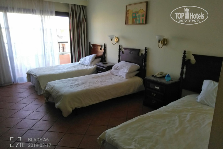 Отдыхали в отеле с 16.03.19 по 26.03.19 ( я, муж,сыновья 16 и 3 года ) . Летели с Бреста .Белавиа. Без задержек все четко. Оператор Teztour. Погода: температура 27-30 градусов. Ветер был всегда , только когда сильнее когда меньше. Мне лично это не доставляло проблем, только когда выходишь с моря, бассейна ,немного дискомфортно. МОРЕ : лично меряли t 23 градуса. Когда заходишь в воду согретый на солнышке - кажется холодно, но очень быстро привыкаешь плаваешь - реально тепло, выходить нехотелось . Нет такого , что надо плавать, чтобы согреться. Поэтому плавали когда хотели и сколько хотели. Наплавались и назагорались вволю. ПЛЯЖ: как удобно , что не надо таскать с собой полотенца. Пришел на пляж : взял потом идешь в номер сдал. И так в аквапарке и бассейне. Три пляжа, мест всегда хватало. На пляж Али бабы не ходили - там каменистый заход в море с ребёнком не подходит. Мы были на пляже отеля Алладин , там ветер был меньше ( защищал причал ) и заход в море есть с песчаным проходом. Для детей идеальным будет пляж Жасмин с полностью песчаным заходом в море. Но там ветер был сильнее. ОПЕРАТОР : Teztour- встретили , довезли ( до отеля минут 15-20 езды ) в отеле встречу провели, все расказали - не навязчивые. Молодцы! Экскурсии у них не брали - дорого. НОМЕР : не старый, не убитый, просторный с жк телевизором , сейфом. Все в рабочем состоянии. Матрасы не скрепели. Был ближе к рецепшн , в спокойном месте ( музыку не слышали) это было важно т.к маленький ребёнок, c красивым видом на лужайку. Уборщих приятный ,познакомился , мы с ним согласовали - когда в какое время уборку лучше делать . Результат радовал: белье , полотенца менялась, вода и бумага пополнялись, пыль вытерта, полы чистые. Молодец ! За такое и не жалко оставляли по 1$ .Остались номером и уборкой довольны . ПИТАНИЕ: нам всего хватало, работало 3 ресторана. Рестораны презентабельные - приятно там находится и кушать. Проблем с пищеварением не было . АНИМАЦИЯ : понравилась , ребята работают , постоянно на пляже : волейбол, танцы , аквааэробика , фитнесс, йога , боча и т.д. вечером- шоу, детское диско. Скучать не придется. АКВАПАРК: рекомендую всем его посетить . Понравился всем членам семьи. Нет такого, что прокатился разок и все , больше не интересно. Горки улет... Адреналин себе подняли - было весело. Младшего с слезами на глазах уводили. Все бассейны в аквапарке с подогревом. За безопасностью следят работники. СЕРВИС : вот здесь в отдельных местах отеля ( основные рестораны и бар у бассена) работникам " незачет". Основная масса отдыхающих 70% немцы , приходят в ресторан и официанты только возле их и крутятся ( напитки им приносят) а на русскоговорящих " закрыты глаза". Говорят они им чаевые отстегивают - не видела ни разу такого. Но мы не гордые и сами себе ходили кофе , воду брали. А в баре у бассейна был такой случай : перед нами стояла пара немцев брали кофе , официант им в форфоровые чашки налил, а нам следом в картонные стаканчики. Вот тебе и разделение . В остальных местах все хорошо : на пляже - сами матрасы несут, стелят. В аквапарке тоже самое. И напитки спросят надо ли. А вообще персонал : улыбчивый, шутят. Ребёнок упал - подошли спросили все ли хорошо, может помощь нужна . На рецепшн доброжелательные, подскажут если что надо. Правда плохо знают русский язык. Но это не проблема - правее от рецепшн сидит " гест релейшн" русскоговорящая девушка к ней обращаются туристы 