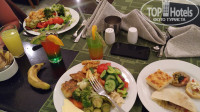 Про обед и ужин могу сказать, что голодным не будешь, но изысков и не поешь (за неделю были один раз кальмары очень острые и жареные перепёлки), всегда были рыба, мясо говядина и курица, фасоль, очень много овощей разного приготовления (брокколи, цветная капуста, цукини, морковка, тыква, помидоры, перец, огурцы, шалата, оливки, баклажаны). Гарниры: картошка, рис, макароны. Всегда было 2 вида супа, но очень жиденькие и специфические, мы не кушали. Пицца с сыром вкусная.