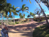 Основной корпус достаточно большой (3-4 этажа), бунгальная зона Бич клаб – по тропинкам метров 400-500 (не более) прогулочным шагом макс 10 минут. Территория огромная, с тропинками, зеленью, большим бассейном, 2-ым бассейном с джакузи и баром в бунгальной зоне Бич клаб, театром, основным рестораном, несколькими барами и тд. и 2 пляжа. Тренажерный зал – в основном корпусе, для отеля вполне отличный, есть все тренажеры, турники, скамьи, дорожки, вело, степперы и тд. Небольшой магазин с сувенирами, продуктами недалеко от рецепции (цены завышены), и несколько мини торговых точек у основного бассейна (тут недорогая сувенирка, полотенца, футболки, изделия из кожи и тд.). На территории боле менее чисто, убирают, стригут зелень, поливают, что-то ремонтируют постоянно. По территории ходят много секьюрити, с других отелей людей не пускают.