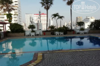 Бассейн расположен на 11 этаже, открытый, небольшой, глубина до 2 метров. Утром – желающих искупаться не было. Рядом обшарпанный тренажёрный зал, тоже был пуст.
