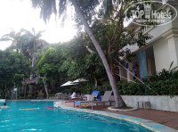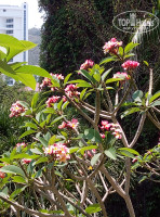 Всем привет. Территория отеля хоть и маленькая ,но очень зеленая.Справа и лева видны горы и чуть моря ( с нашего номера )Слышно как поют птицы. ( по утрам на дереве белка спать не давала . Что то там копошилась ))))) пальмы..очень красивые деревья.цветы.С холла и ресторана видна вся бухта.Отель находится в дали от городской суеты. тихий спокойный в 15 минутах ходьбы от площади бухты Дадунхай. Плюс - бассейн в тени пальм. Персонал приветливый . Уборка каждый день.