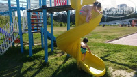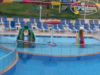 Затронув детскую тему, продолжу… есть хорошая детская комната, с батутом, горкой, шариками, все безопасно общито с поролоном, подойдет для самых маленьких. Есть лото, кубики, домик, кухонька. Мягкое покрытие во всей комнате. Так же есть платная игровая зона. Возле бассейна есть детская площадка на открытом воздухе, хорошая, батут, много горок, разные качели. Так же есть площадка у моря. Но она немного убитая после зимних ветров, думаю к сезону ьам тоже будет супер.