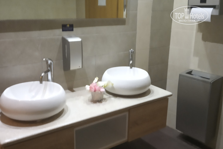 Всегда обращаю внимание на общественные туалеты и шезлонги. Здесь с этим порядок. Все туалеты чистые( здесь везде живые цветы- на столах в ресторане, на ресепшене и в каждом общественном туалете). В туалетах играет музыка.