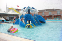 Детская площадка - тоже полностью обновленная. Детский клуб - тоже после ремонта, стоит трехъярусный лабиринт, горка с бассейном с шариками, много разных игрушек. С детьми там занимаются, делают всякие интересные штуки. Еще девушка, которая там работает, рисует деткам на лице, краска потом хорошо смылась. Это все бесплатно. Клуб работает до 17.00. А вечером с 20.30 была детская дискотека с аниматорами.