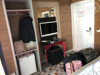 Теперь о номерах. Я описываю номера в корпусах «Анекс» у бассейна. ООООчень маленькие. 12 кв.м, не больше. Перемещаться места нет вообще. Открыли дверь, перепрыгнули чемодан и сразу на кровать) Протиснулись перед кроватью—попали в санузел. Косметический ремонт делать пытались, но везде недоделки: торчат провода без светильников, новая полка с зеркалом прибита прямо на старое овальное зеркало, которое выглядывает из-под нового. Самый большой минус номера- отсутствие шкафа. Смотрите на фото сами. Еще и сейф впихнули в это подобие шкафа, поэтому повесить одежду на вешалки невозможно. Все вещи были в чемоданах, которые тоже некуда было ставить🤪. Но! В номере было очень чисто, полотенца меняли и убирали каждый день очень качественно. Телефон в номере не работает. Если, не дай Бог, что- вам хана, даже на ресепшн позвонить не сможете. В номерах очень холодно, одеял нет- только простыни. Трижды просили одеяло или плед, только под вечер следующего дня с барского плеча жаловали еще по одной простыне. Кондиционер на обогрев не работал (оказывается, на самом кондере нужно было что-то переключить. Как мы должны об этом догадаться???) Спали в штанах и кофтах со включенным кондиционером. Есть комары, берите средства от насекомых. В попытках поправить вешалку в ванной поцарапалась, торчащим из нее гвоздем (будьте осторожны, в анекс-корпусах они у всех торчат) Звукоизоляции никакой. Анимация у бассейна орет так, будто стоят у вас в номере, при этом дверь на балкон закрыта. С детьми ни в коем случае не берите номера в корпусах у бассейна. Кстати, от музыки не спрятаться нигде: в бич-баре ее включают на полную громкость, отдохнуть на пирсе не получится в тишине. Нам объяснили: «Это тусовочный отель» “Moscow never sleep”😂😂😂