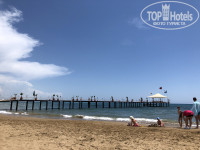 На пляже пирс, в воде не далеко камни. Около пляжа барчик - пиво, напитки, айран. Вай фай не ловит, либо ловит и выкидывает.