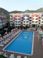 Отдыхали с подругой с 29 апреля по 6 мая 2019г. Прибыли в отель около 7 часов утра. Нам одели отельные браслетики и предложили позавтракать и ознакомиться с территорией пока готовился номер. Официальное заселение с 14 часов,но в 10 утра нас уже проводили в номер. Заселили нас во 2 корпус.Номер оказался не очень большой, но уютный с большим балконом и видом на горы. Нас это очень даже устраивало. В номере всё работало. Небольшой минус номера, это слабая звукоизоляция и отсутствие шампуня. В наличие было только жидкое мыло. Уборка номера и смена полотенец по требованию, что тоже нас устраивало. Территория отеля большая и дизайнерски оформлена. Очень много уютных мест для отдыха. Три открытых бассейна, один из них с водными горками которые практически всегда работали и большое количество разнообразных лежаков. При таком огромном количестве гостей, недостатка в лежаках не было. Всегда спокойно можно было прийти к бассейну или на пляж и найти свободные лежаки. Территория пляжа и пирс тоже очень уютные и красочно оформлены. Основной ресторан размещён в главном корпусе. И там тоже не было проблем с размещением. Работники зала приветливые и шустрые, пустые тарелки убирали мгновенно, так что под рукой ничего не мешало. Еда вкусня и разнообразная. В меню всегда было мясо, курица, рыба. Немного может быть не хватало оформления в виде привычного для Турции карвинга, но это мелочи. Аниматоры просто зажигалки. Проводили всякие развлекательные мероприятия и утром, и днём и вечером. Не возможно было усидеть на месте.Работники отеля регулярно интересовались всё ли нас устраивает и нужно ли что нам. Любая просьба выполнялась в течении часа. Для информации: при заезде берётся залог 10$, который возвращается при убытии, если конечно вы ничего не сломали и не разбили. И наверное самый большой минус это платный вай фай. Обычно хотя бы в лобби баре но вай фай бесплатный. Но мы и здесь нашли свой плюс. Немного отдохнули от гаджетов. И гуляли спокойно, не отвлекаясь на интернет. Спасибо за отдых. Рекомендую.