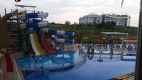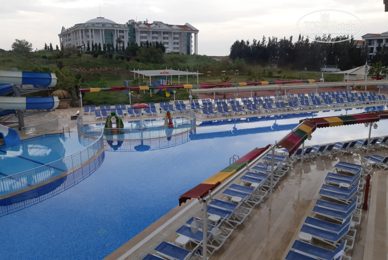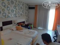 В Турции 2й раз, первый раз были без детей, в этот раз уже с детьми. Разница огромная - когда отдыхает без детей турки пытаются затащить в магазин, чтобы что ниб продать, навязать какие то услуги, но с детьми отношение совсем другое.турки очень любят деток (особенно лет до 3),сюсюкают их, общаются с ними, готовы на руках носить вместо мам и пап). Об отеле: мы жили в улучшенном номере 30квм, несмотря на то что у нас в номере стояло 2 кровати (2спальная и 1.5спальная) и еще мы запросили детскую кроватку в номер(бесплатно), у нас все равно осталось место где ходить и играть. В номере есть чайник и минибар(пополняют каждый день!).убирают номер тоже каждый день! Довольно часто меняют полотенца постельное белье (знаю что многие отели грешат этим, но тут все было как положено). Любые проблемы стараются решить(нашли винтики для детской коляски, которая сломалась, в номер установили цепочку на дверь чтобы ребенок не убегал самовольно:) все очень приветливые, стараются помочь. На пляже отеля: напитки в доступе с самого утра (А мы там были с 8-9:), мини детская площадка, в 11 приходит аниматлр и зовет всех на волейбол. До пляжа минут 15 средним шагом с колясками, но можно доехать и на бесплатной маршрутке (коляски туда тоже помещаются!) В отеле есть замечательный фотограф - можно заказать у него мини- или полную фотосессию. Делает постановочные кадры -выставляет ноги руки головы как нужно, чтобы все красиво получились). из еды для Деток конечно небольшой выбор - мясо нужно поискать без специй, рис, картошка фри, макароны,спагетти. Для взрослых выбор огромен, пирожные - особенный восторг!) В отеле работает детская игровая комната (Когда мы были работала по часам: 10-12, 14.30-17.00. Также включают горки по 2 часа в день с 14.00. В 16.00 выдают мороженое (Если погода не дождливая и не холодная). Также есть хамам (символический), и крытые бассейны (В принципе теплые, по сравнению с открытыми, которые не подогреваются). Для деток еще есть где погулять что важно. Есть поле футбольное мячик погонять, и рядом площадка с несколькими горками. До магазинчиков и рынка идти с колясками идти минут 15. Лучше менять на лиры,и платить типами- тогда цена будет точнее и дешевле. В долларах и евро цены сразу растет. Итог: отель понравился,Мы бы вернулись туда еще!